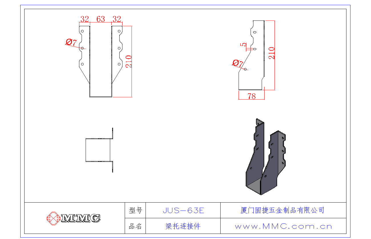 JUS-63E 梁托-U型掛件-龍骨與橫梁水平連接件-木結(jié)構(gòu)別墅金屬配件