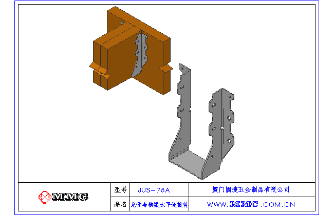 MMC梁托連接件系列,適用于兩根38*184(2*8)的龍骨與橫梁間的連接,廣泛應用于各種木屋、木棧道、花架、涼亭等木結構建筑