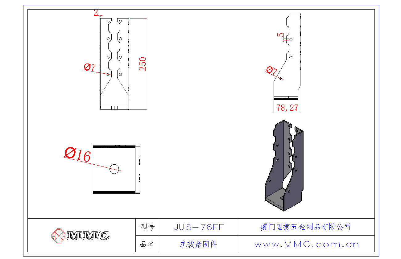 JUS-76EF 抗拔緊固件-小木屋金屬配件