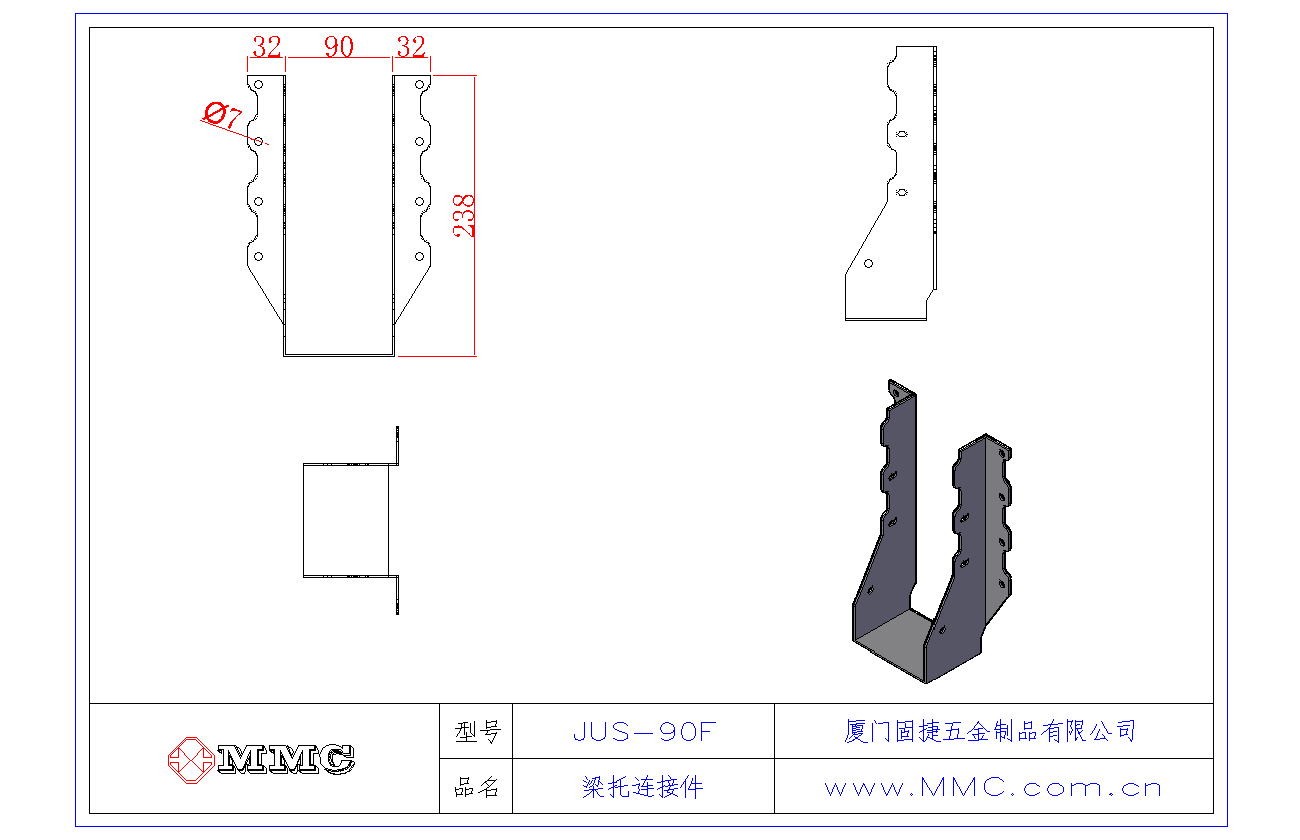 JUS-90F 梁托連接件-U型掛件-木屋配件