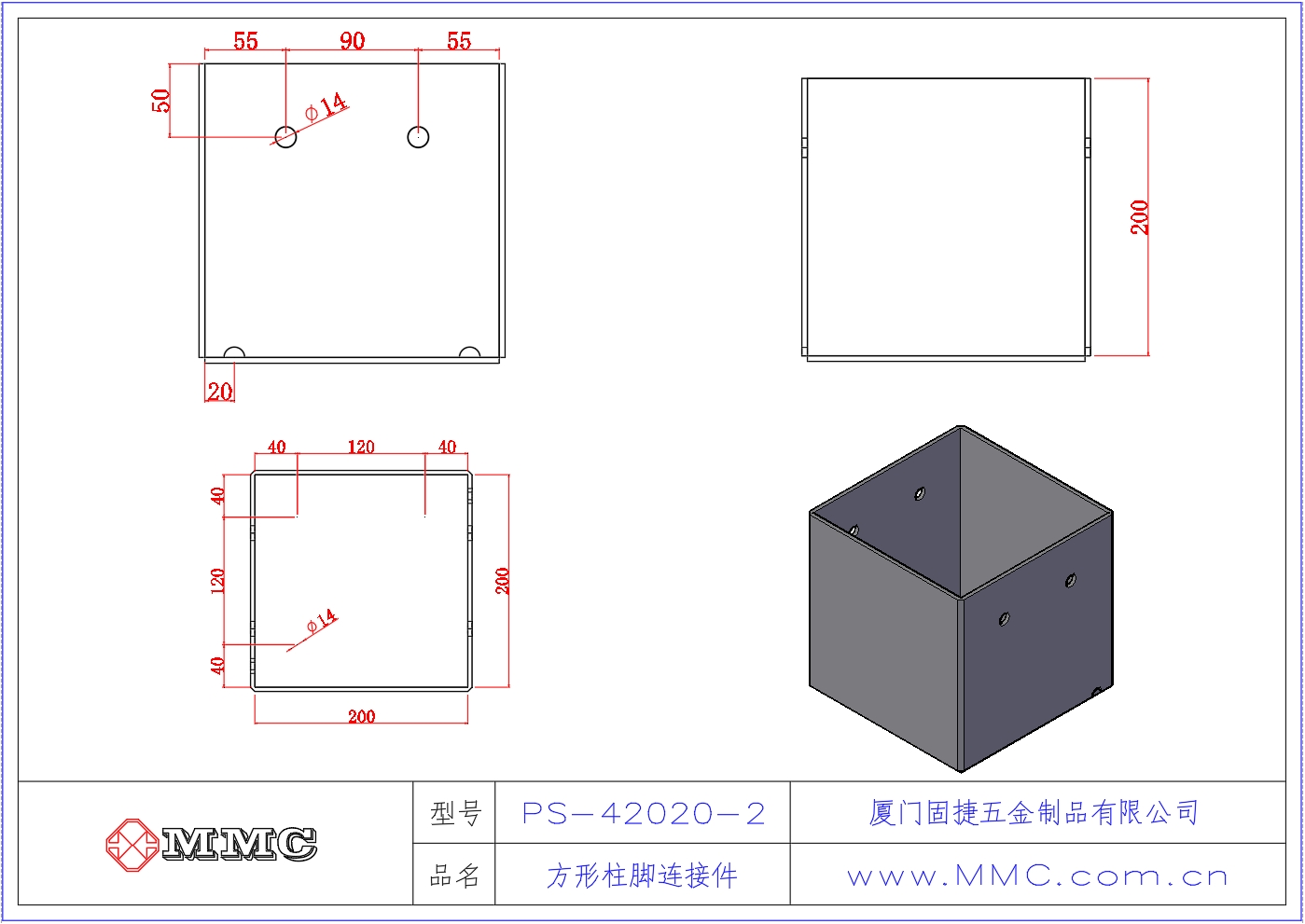 PS-42020-2 柱腳連接件-立柱連接件-方形立柱連接件-柱靴