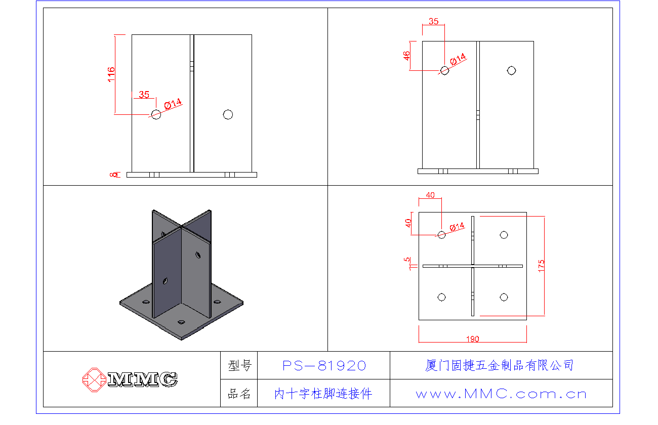 PS-81920 十字形柱腳連接件-隱藏式柱腳連接件