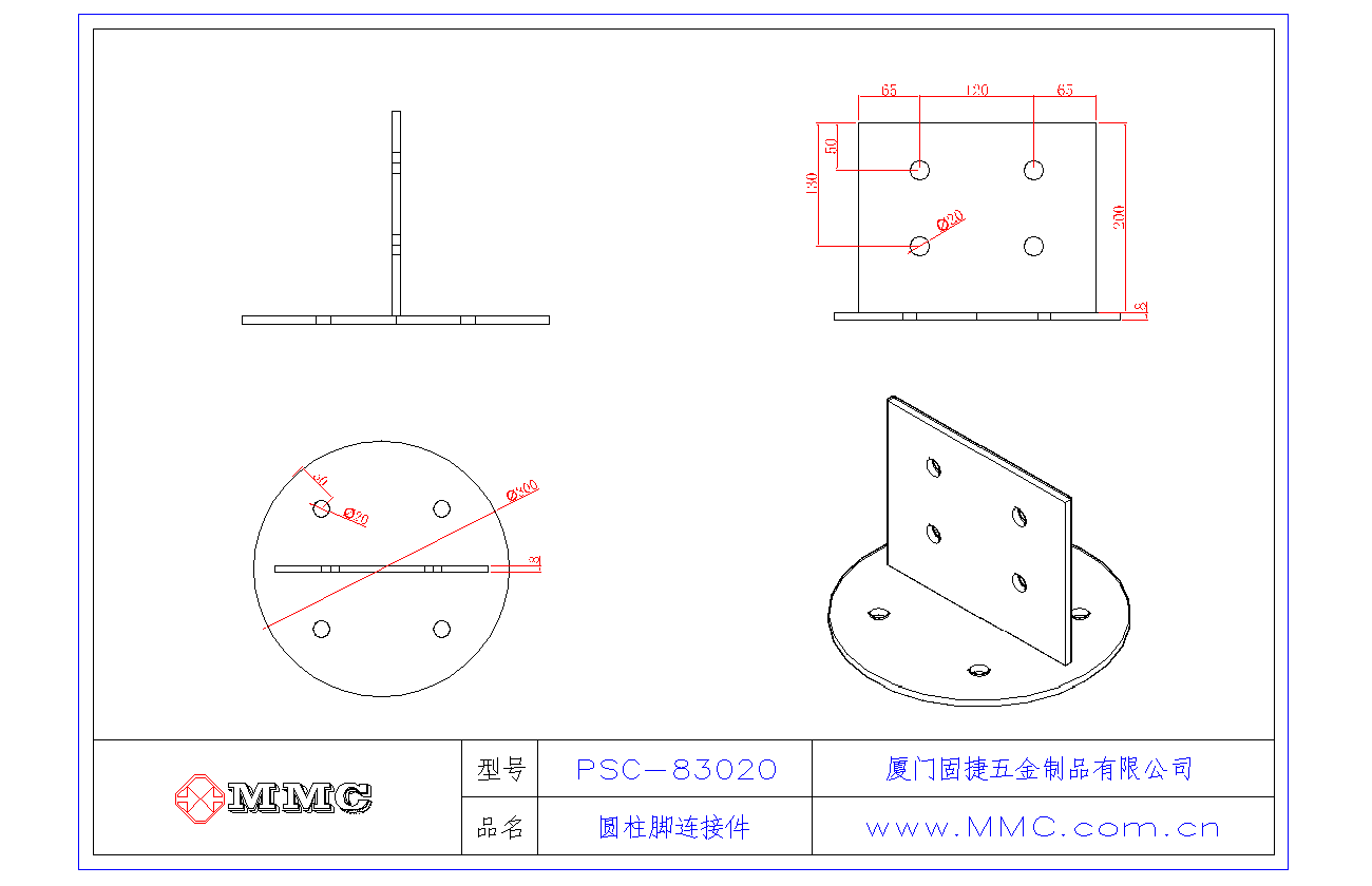 PSC-83020 圓形柱腳連接件-圓型立柱連接件-圓柱連接件-T型連接件