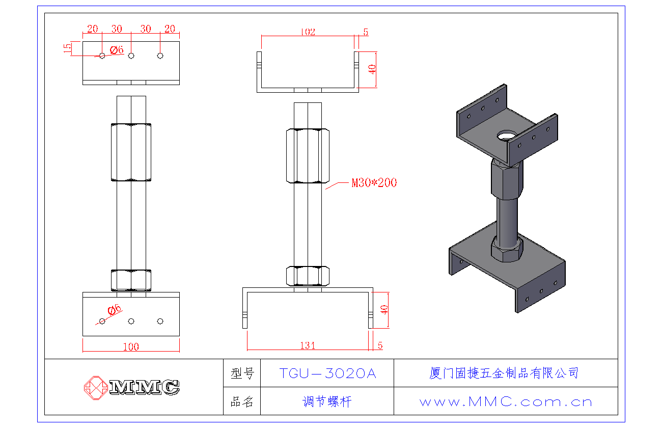 TGU-3020A 升降螺桿-調(diào)節(jié)螺桿-調(diào)節(jié)螺栓-伸縮螺桿-木屋連接件