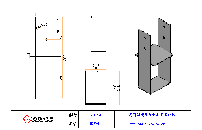 WE14 固定式立柱預埋件-木結構別墅金屬配件