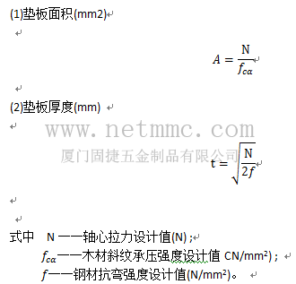 11.圓鋼拉桿和拉力螺栓的直徑,應(yīng)按計(jì)算確定,但不宜小于12mmo 圓鋼拉桿和拉力螺栓的方形鋼墊板尺寸,可按下列公式計(jì)算: