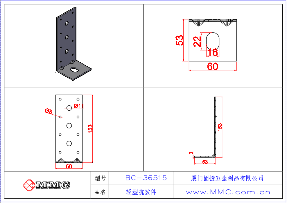 BC-36515 輕型抗拔件-輕鋼連接件-輕鋼抗拔件