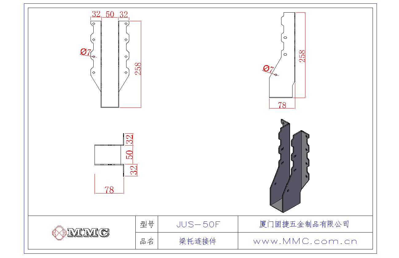 JUS-50F 梁托連接件-U型掛件-木屋配件