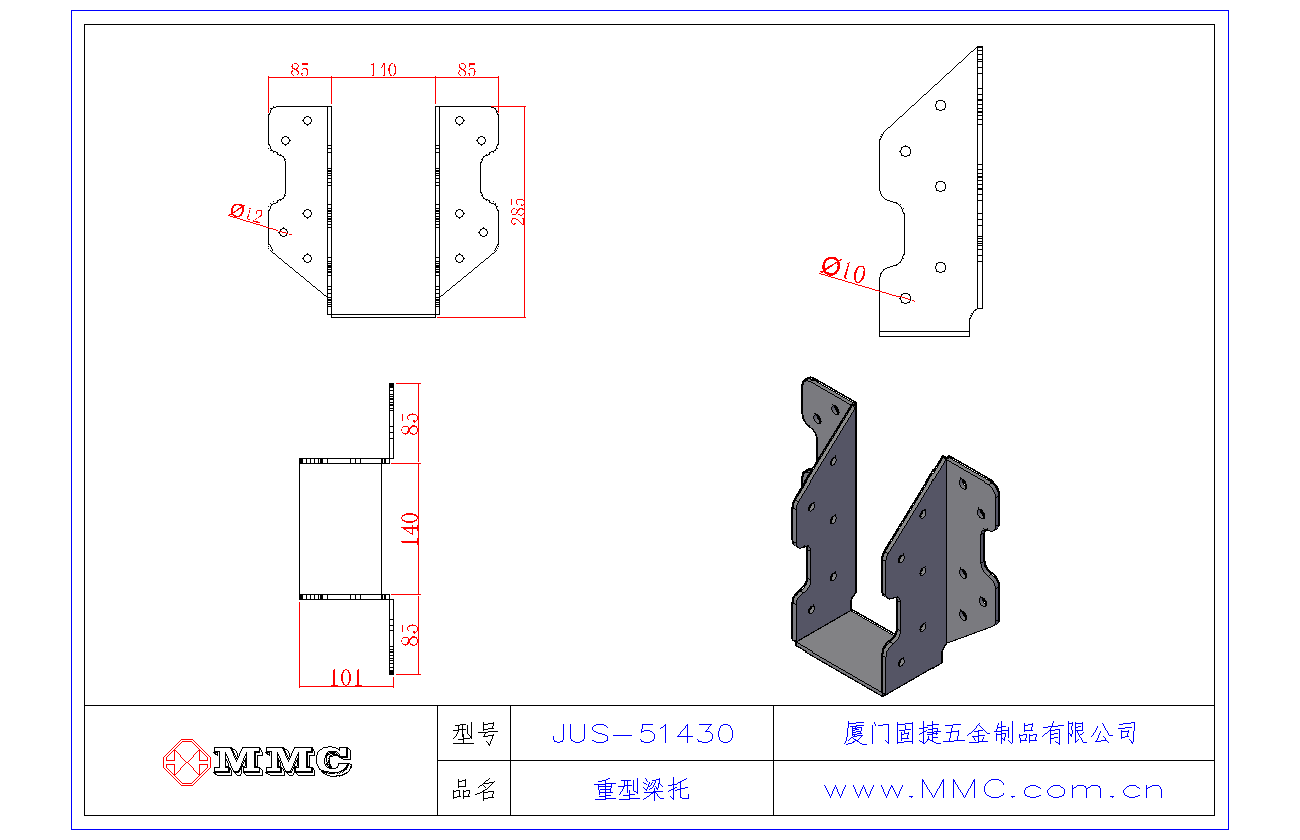 重型梁托連接件,適用于寬度140高度300以上的膠合梁的連接