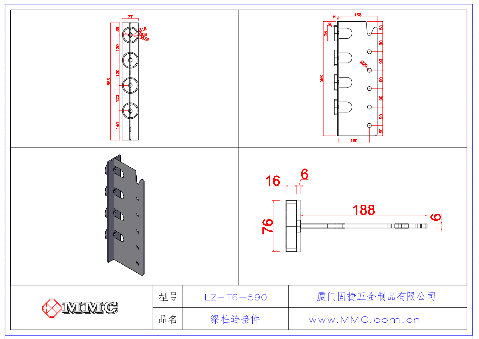 LZ-T6-590 梁柱連接件-日式連接件-隱藏式T型連接件