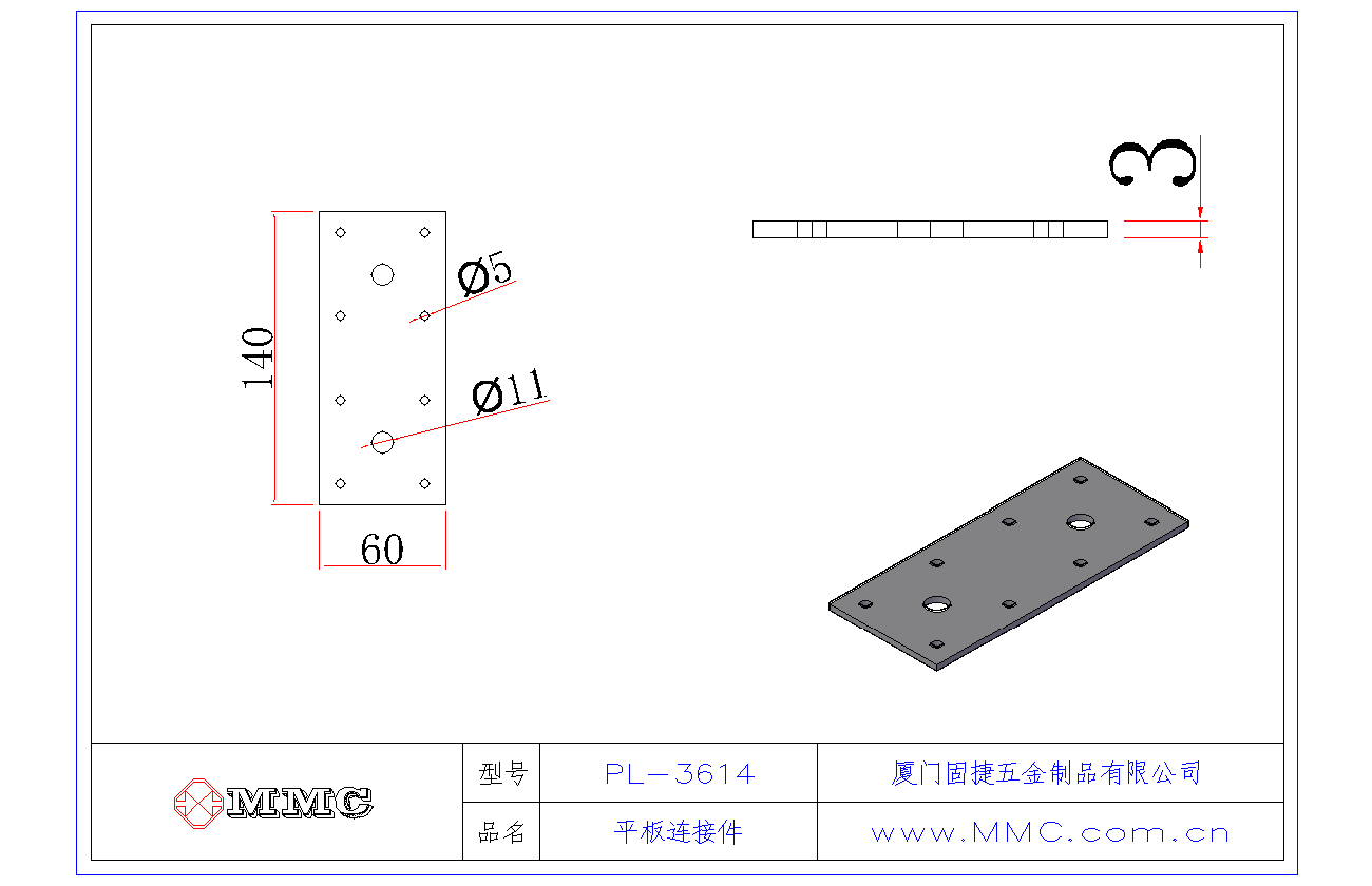 平板連接件,厚度默認為3mm,可定制2mm產(chǎn)品。