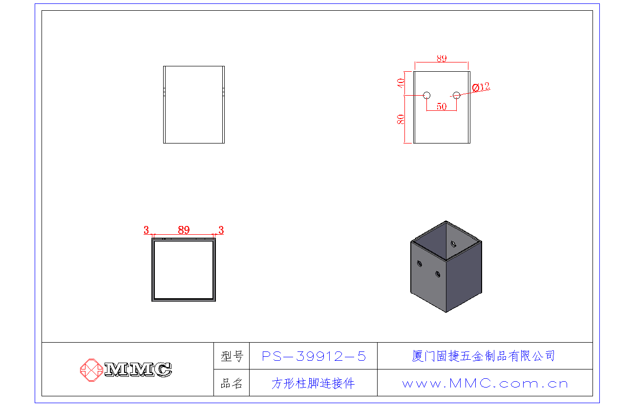 PS-39912-5 柱腳連接件-立柱連接件-方形立柱連接件-柱靴