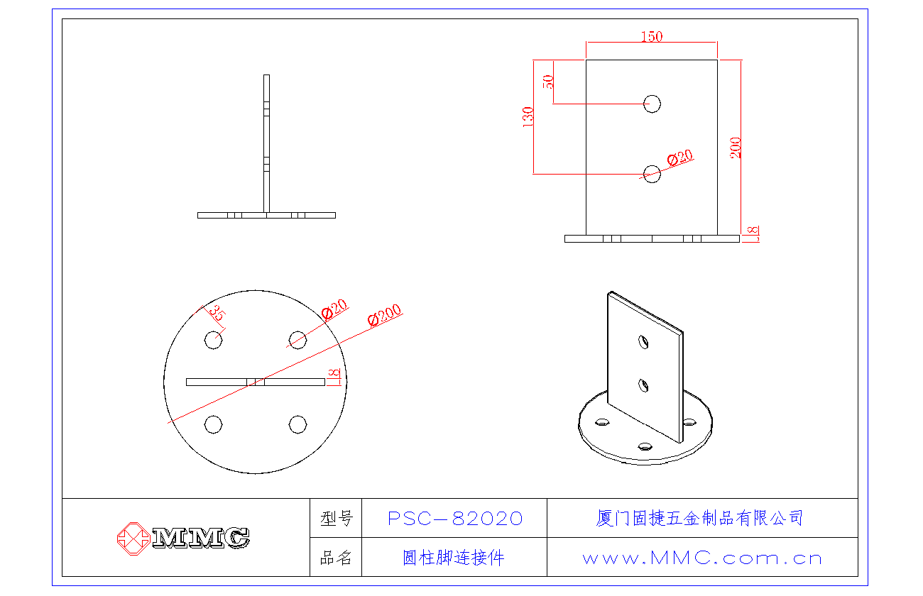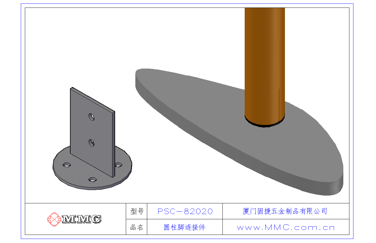 PSC-82020 圓形柱腳連接件-圓型立柱連接件-圓柱連接件-T型連接件