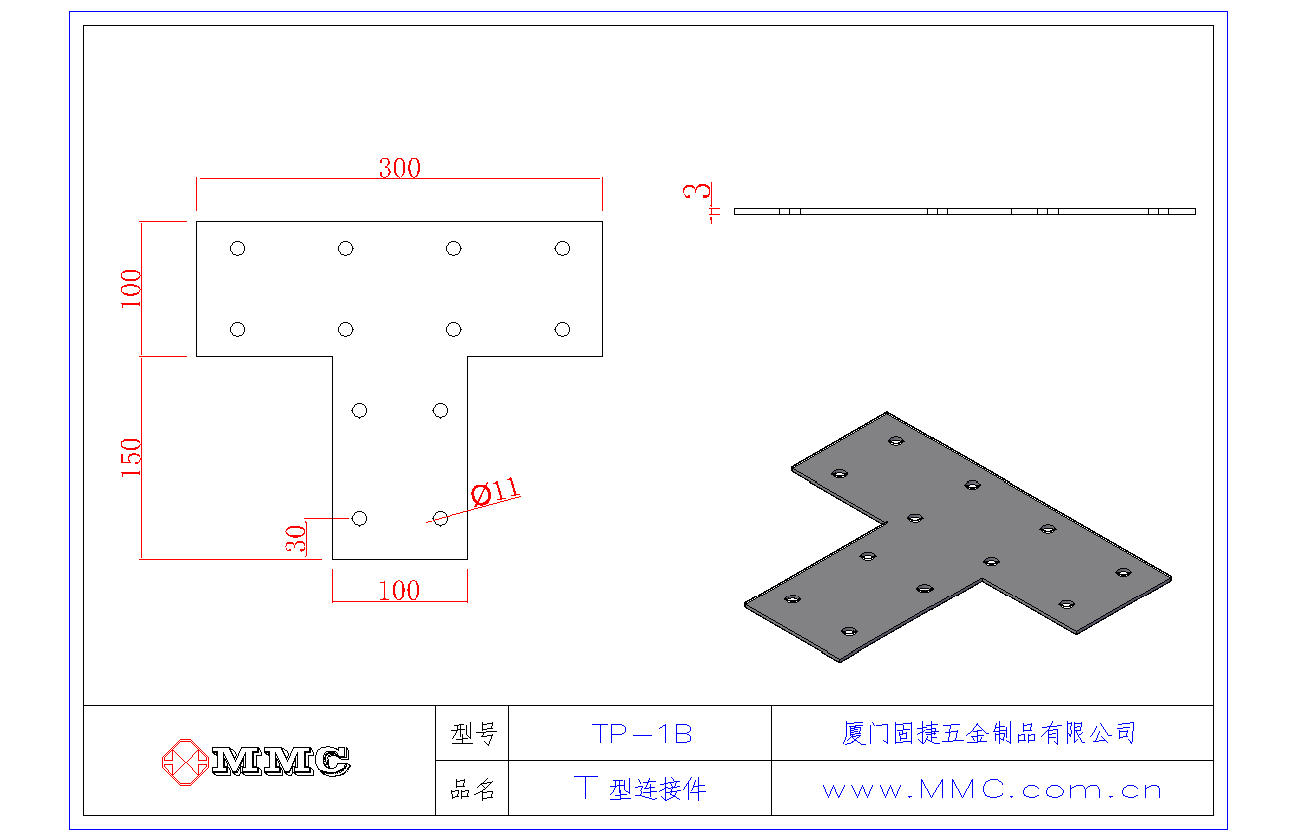 T型連接件,與TP-1的關(guān)系是一個是大孔版,一個是小孔版。