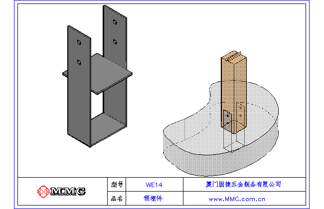 WE14 固定式立柱預埋件-木結構別墅金屬配件